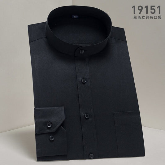 Stand Collar Long Sleeve Slim Fit Dress Shirt