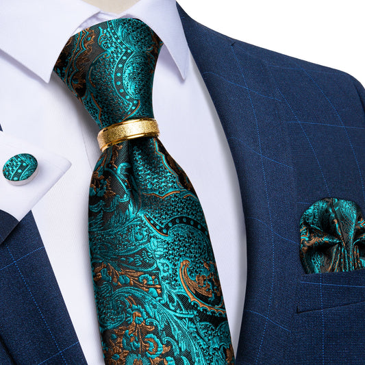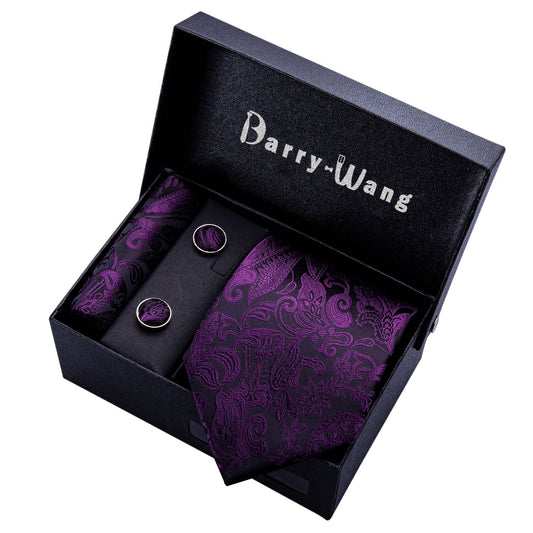 Mens Paisley Silk Tie Pocket Square Gift Box Set